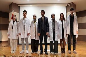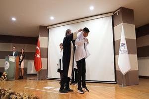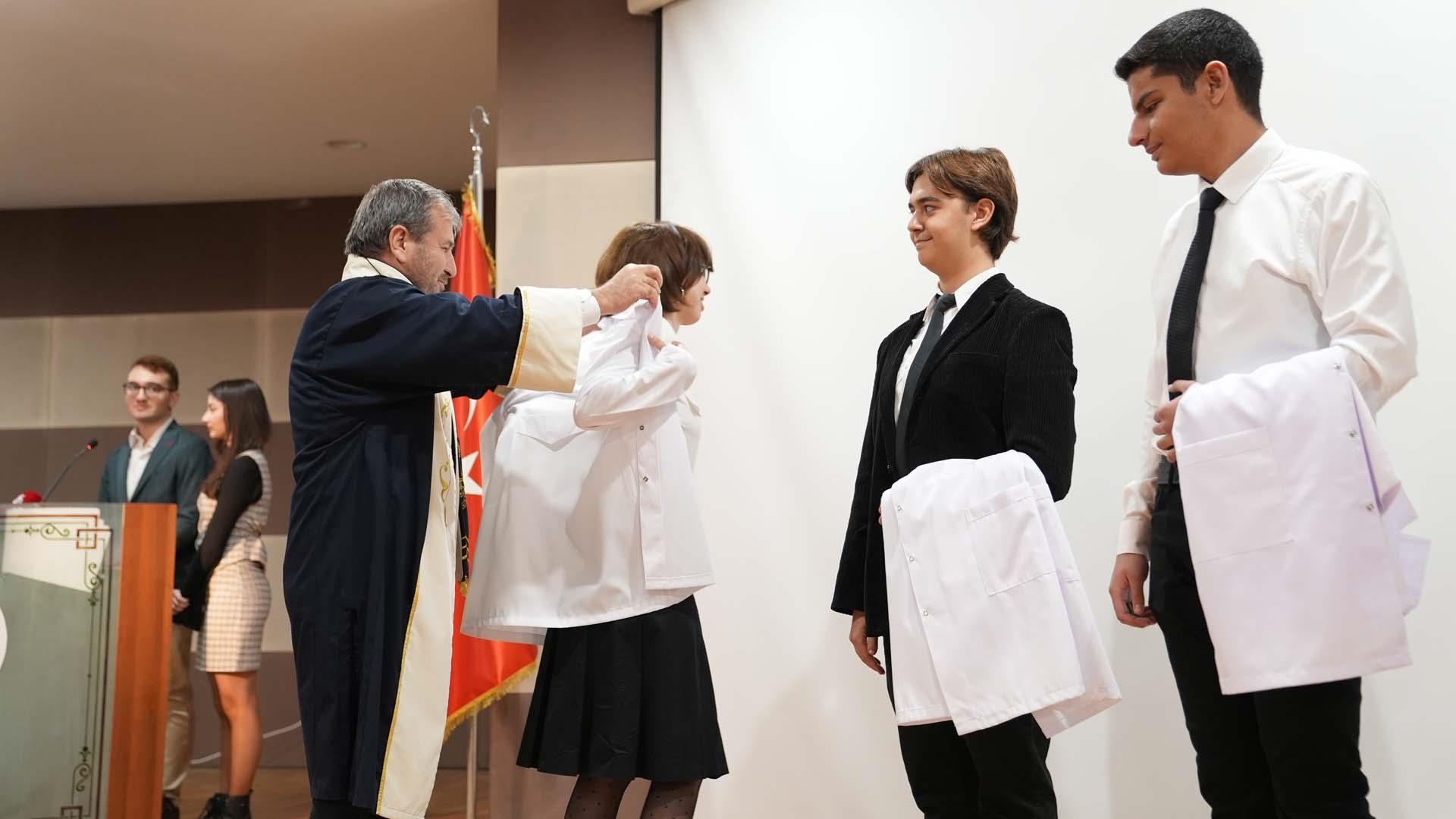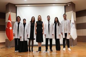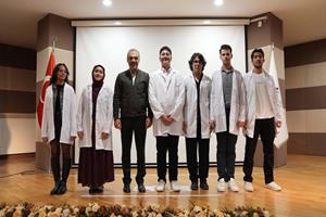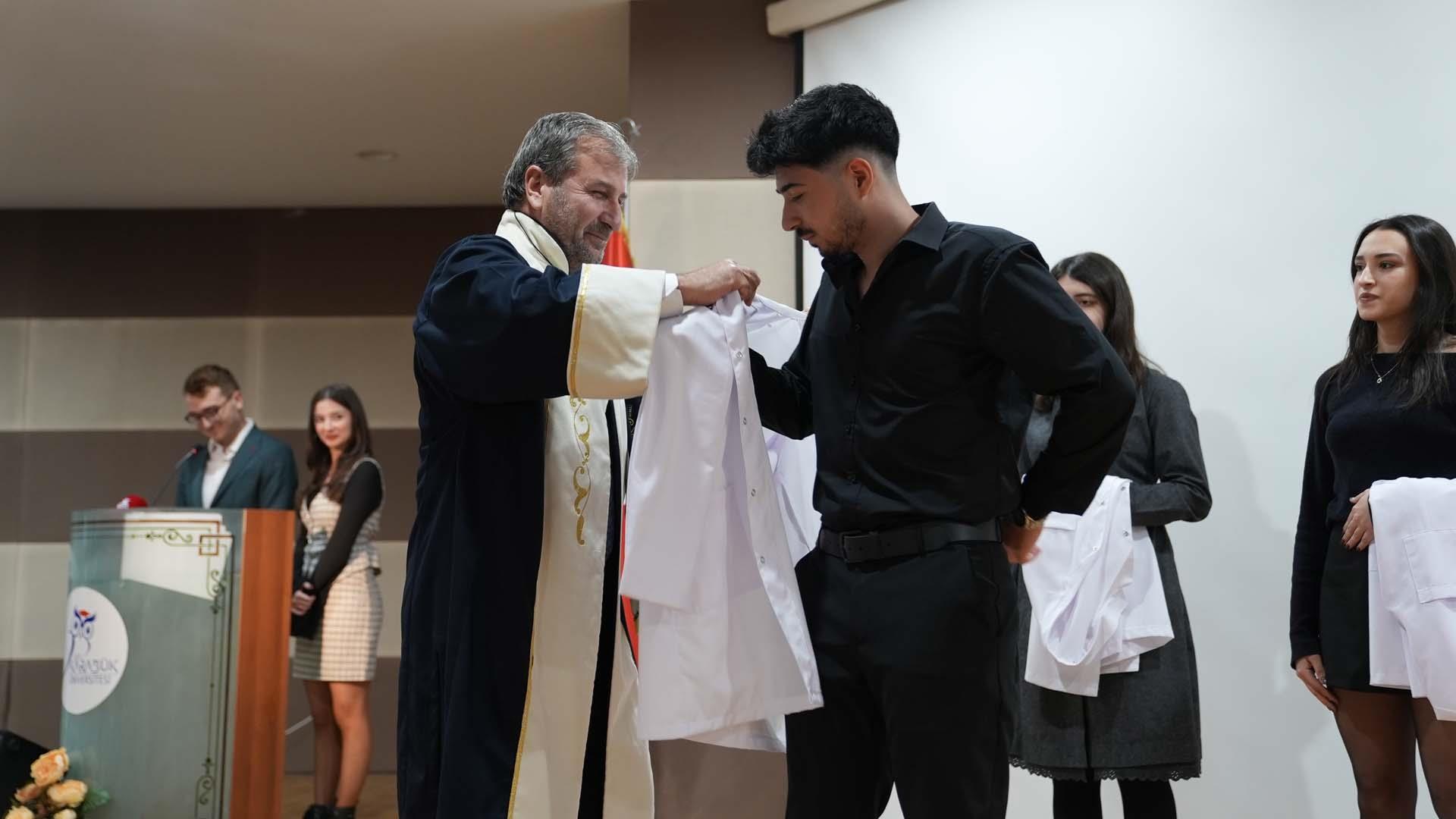 Karabük Eğitim ve Araştırma Hastanesi Başhekimi Doç. Dr. Erkan Doğan ise öğrencilere mesleğin ahlaki ve insani sorumluluklarını hatırlatarak şu ifadeleri kullandı: “Giydiğiniz bu önlük sadece iki metrelik beyaz bir kumaş değildir. Beyaz önlük saflıktır, temizliktir, güçtür, kudrettir, sorumluluktur, vebaldir.”