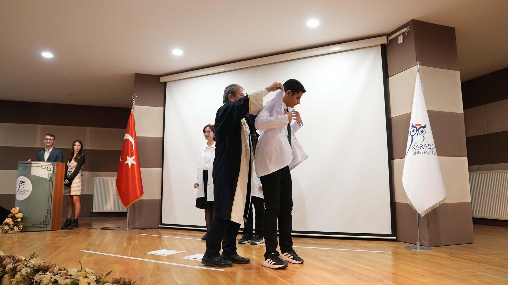 Karabük Üniversitesi Tıp Fakültesi öğrencileri beyaz önlüklerini öğretim üyelerinin elinden giydi. Törende konuşan Rektör Yardımcısı Prof. Dr. Hasan Solmaz, hastane yanında bulunan İmam Hatip Lisesi binasının tıp fakültesine devri için sürecin hızlandığını açıkladı.