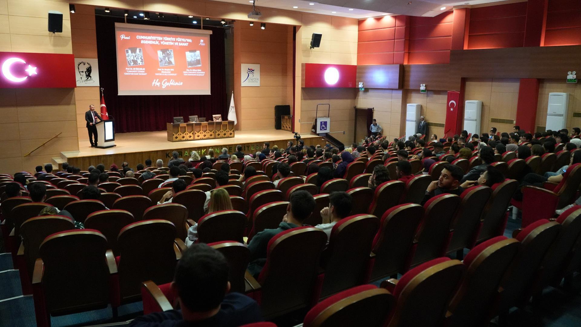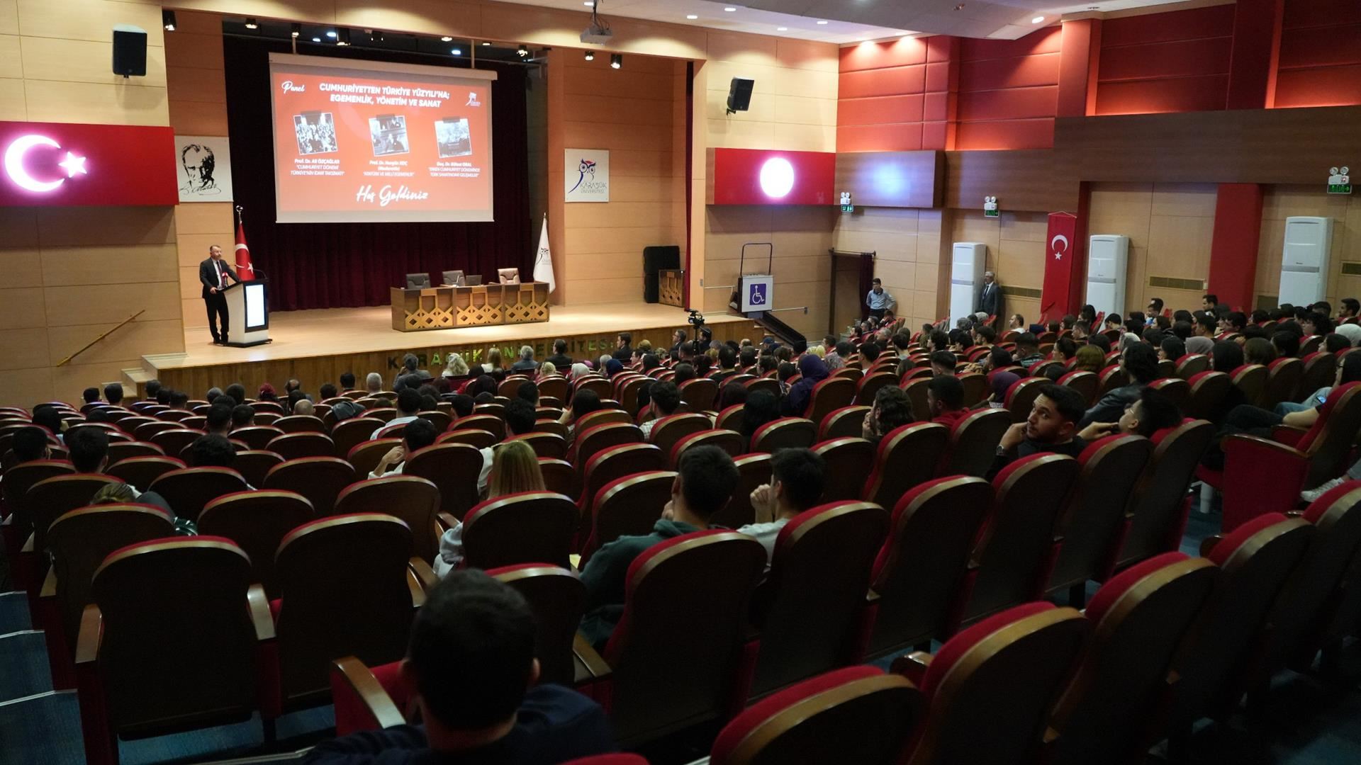 Cumhuriyetin 102. yılı etkinlikleri çerçevesinde Karabük Üniversitesi (KBÜ) tarafından “Cumhuriyetten Türkiye Yüzyılı’na: Egemenlik, Yönetim ve Sanat” paneli düzenlendi.