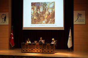 Sanat Tarihi Bölümü Öğretim Üyesi Doç. Dr. Bülent Oral ise “Erken Cumhuriyet Döneminde Türk Sanatındaki Gelişmeler” konulu sunumunda Cumhuriyetin ilk yıllarında sanat alanında yaşanan dönüşümü değerlendirdi. Oral, Mimar Sinan Güzel Sanatlar Akademisinin kuruluşunun Türk sanatında yeni bir dönemin başlangıcı olduğunu belirtti. Cumhuriyetin sanata bakışında Atatürk’ün liderliğinin belirleyici olduğunu ifade eden Oral, “Atatürk, sanatta liderlik yaparken ruh eğitimine de önem vermiştir. Türk gençliği, vatanını en çok seven bireyler olarak çalışmalı ve üretmelidir.” dedi.