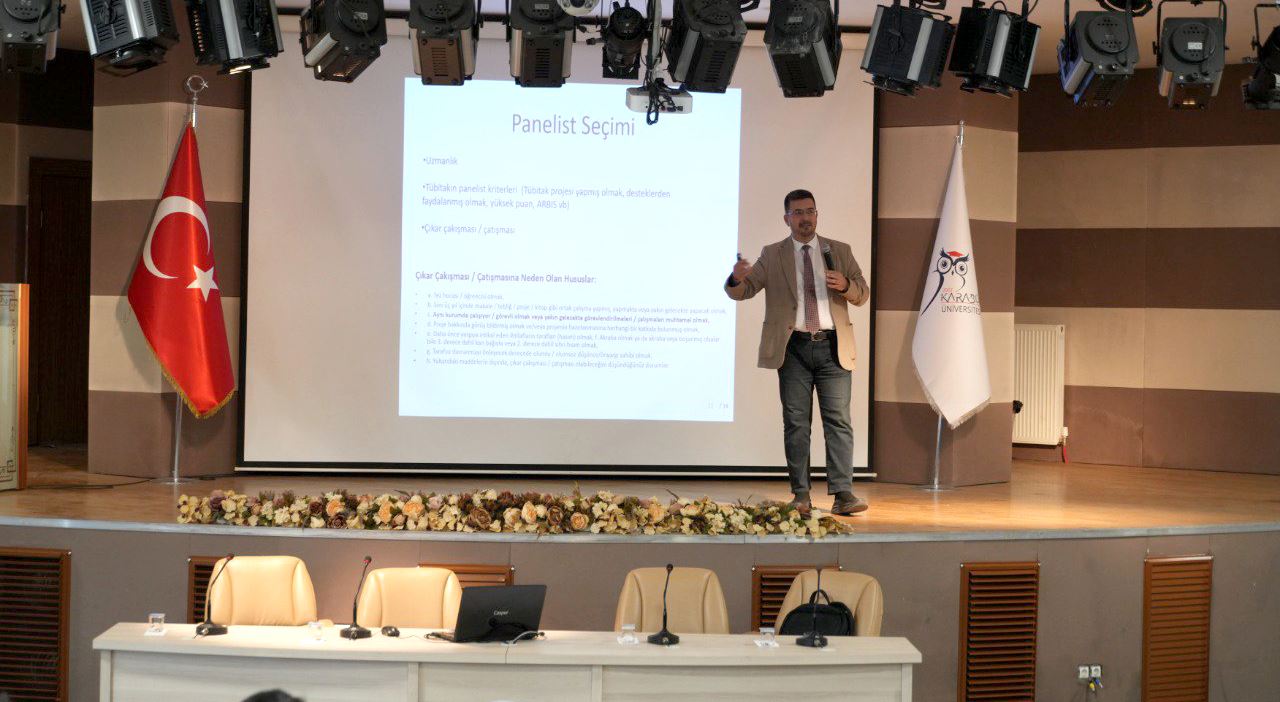 Karaş, proje hazırlık aşamasından kabul sürecine kadar geçen adımların yanı sıra panel oluşturma sistemi, panelist seçimi ve ortak panel raporu hazırlığı gibi kritik aşamalara da değindi. Akademisyenlerin TÜBİTAK projelerine daha etkin katılım sağlamaları için dikkat edilmesi gereken noktaları vurguladı.