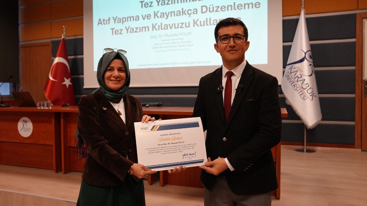 Karabük Üniversitesinde lisansüstü öğrencilere yönelik düzenlenen Tez Yazım Atölyesi'nde bilimsel etik, atıf teknikleri ve kaynakça hazırlama konuları ele alındı.