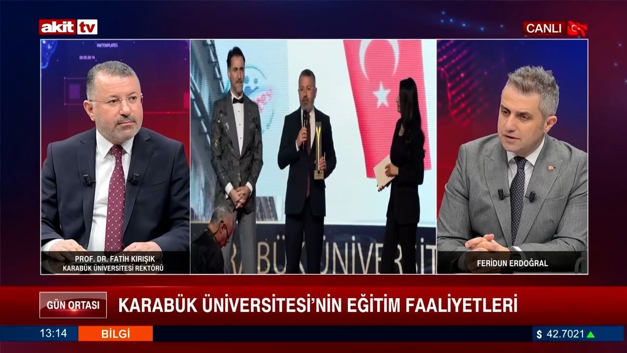 Karabük Üniversitesi Rektörü Prof. Dr. Fatih Kırışık, Akit TV’de canlı olarak yayımlanan ve Feridun Erdoğral’ın sunduğu “Gün Ortası” programına konuk oldu.