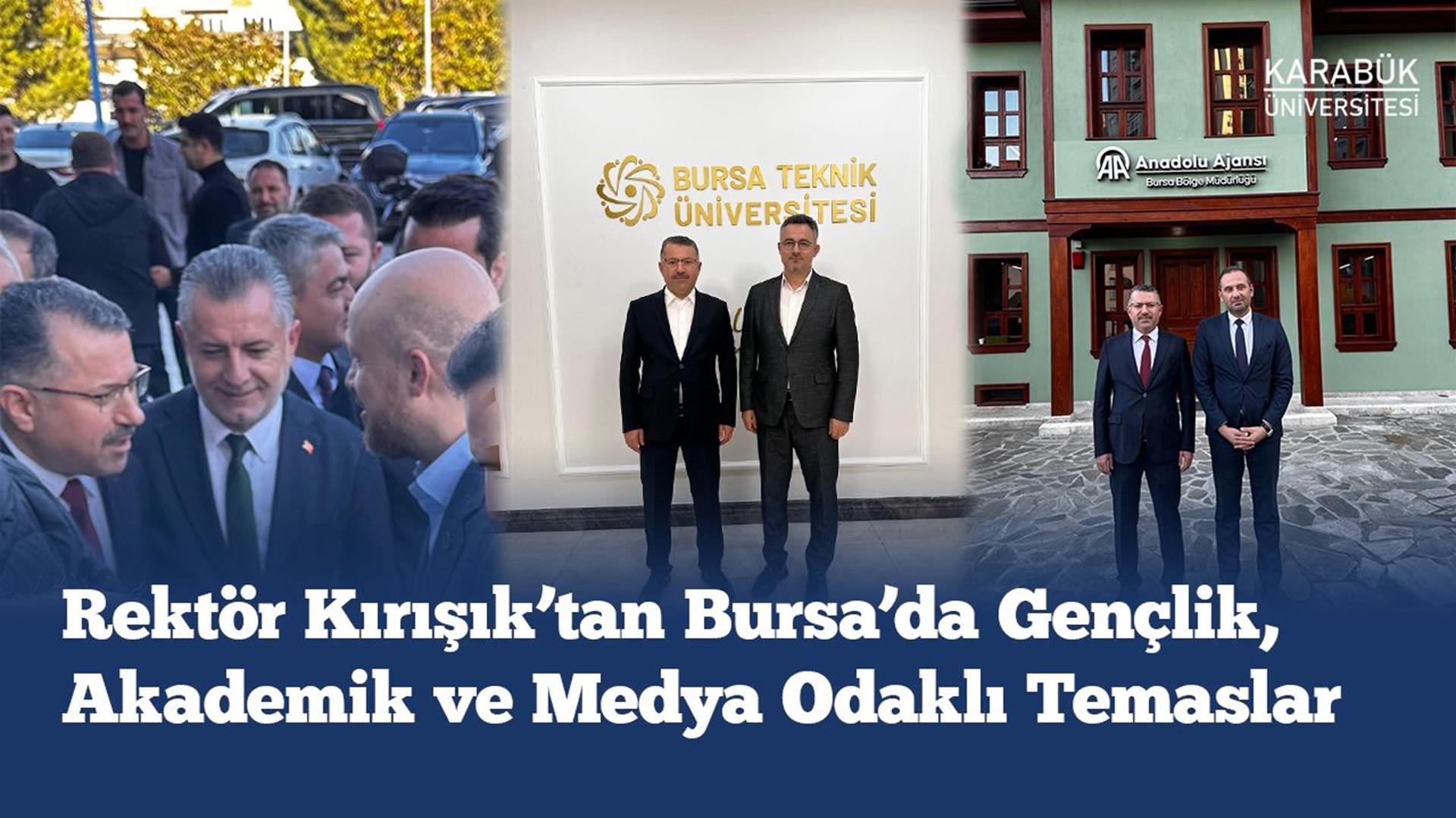 Karabük Üniversitesi Rektörü Prof. Dr. Fatih Kırışık, Bursa ziyaretlerinde "TÜGVA Kitap Kurdu Yarışması"nın lansmanına katıldı, Bursa Teknik Üniversitesi ile iş birliği görüşmeleri gerçekleştirdi ve Anadolu Ajansı’nı ziyaret etti.