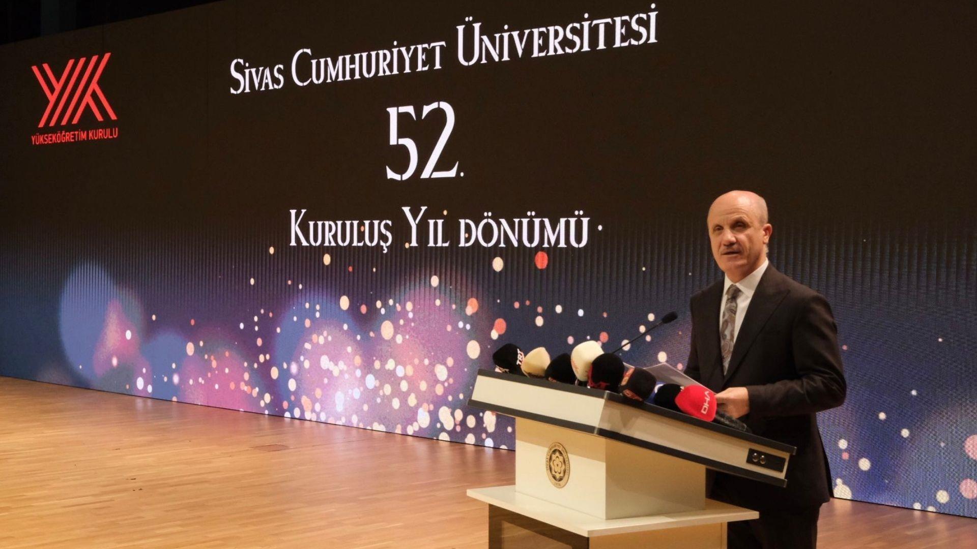 Sivas Cumhuriyet Üniversitesinin 52’nci kuruluş yıl dönümü dolayısıyla düzenlenen programa, Yükseköğretim Kurulu Başkanı Prof. Dr. Erol Özvar katıldı. Programa ayrıca Sivas Valisi Yılmaz Şimşek, Sivas Milletvekilleri Hakan Aksu ve Rukiye Toy, Sivas Belediye Başkanı Adem Uzun, il protokolü ve üniversite rektörleri katıldı.