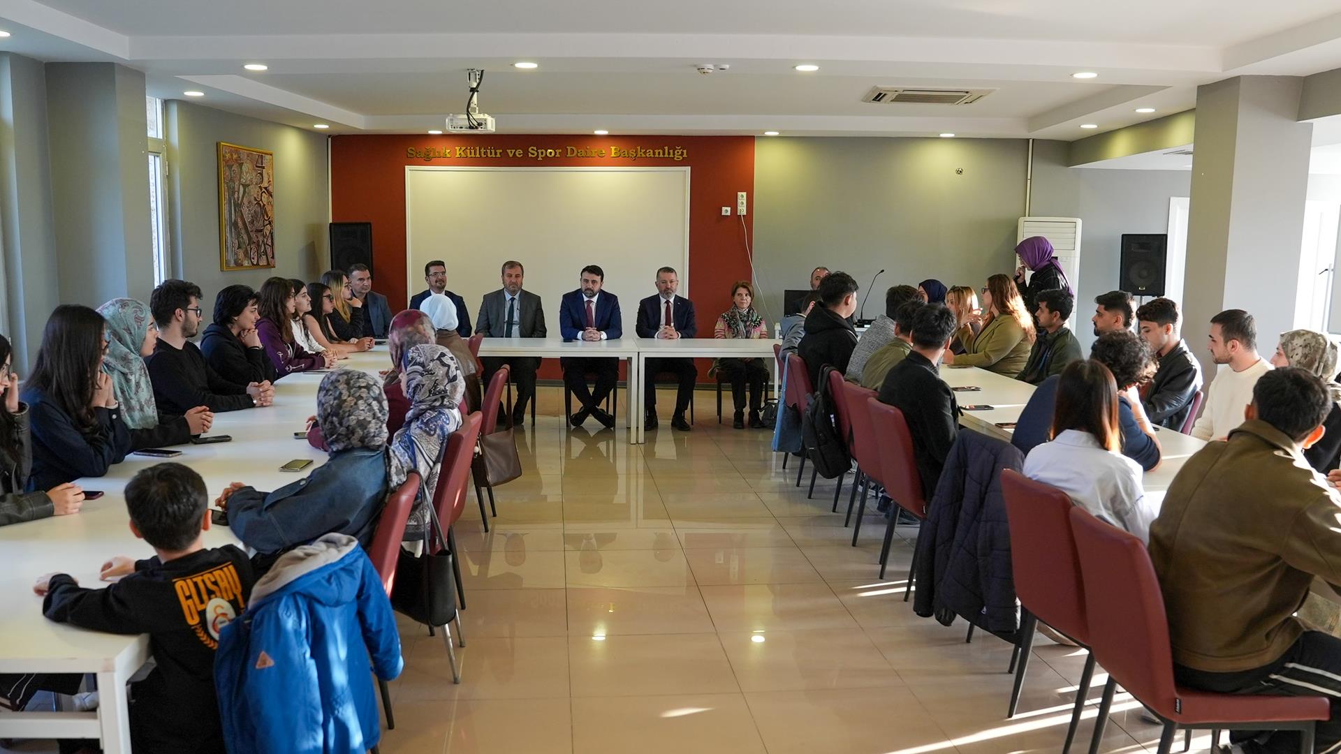 Karabük Milletvekili Cem Şahin ile Karabük Üniversitesi (KBÜ) Rektörü Prof. Dr. Fatih Kırışık, Sosyal Yaşam Merkezi Öğrenci Etkinlik Merkezi’nde öğrencilerle bir araya geldi.