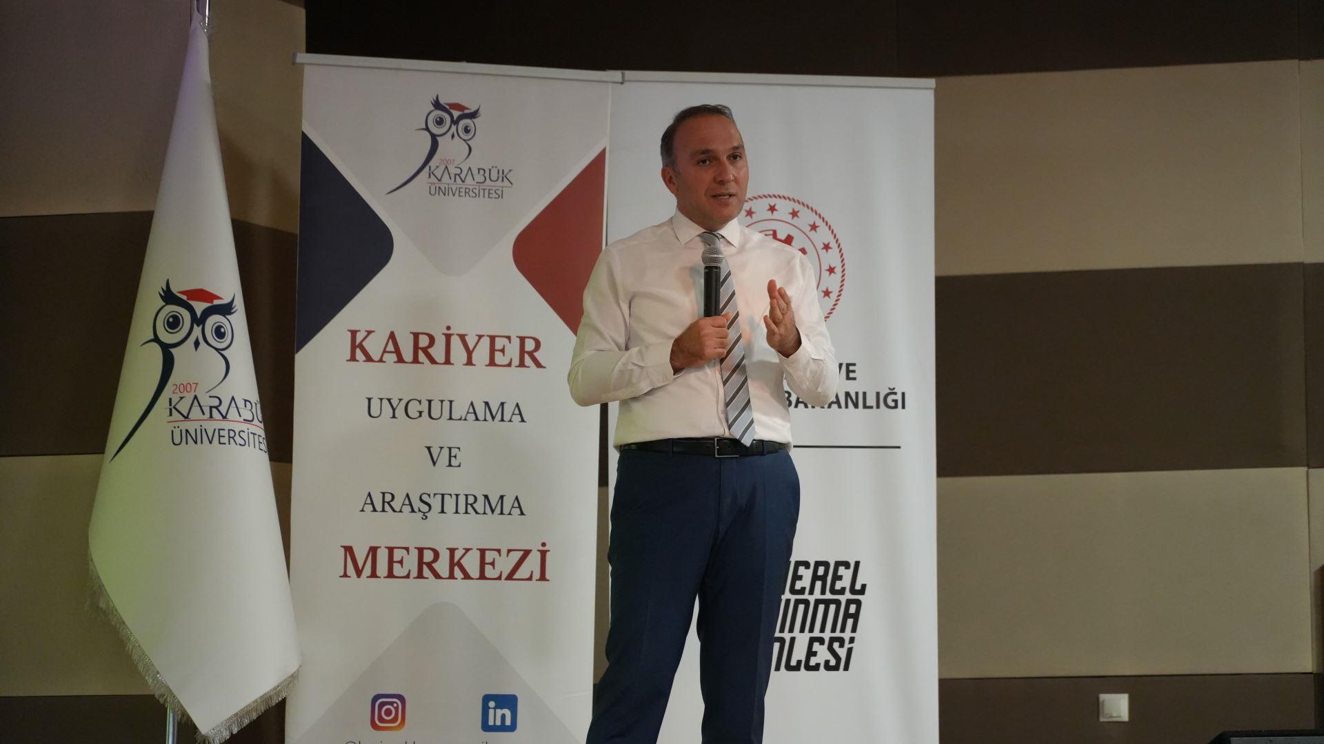 Karabük Üniversitesi (KBÜ) Kariyer Uygulama ve Araştırma Merkezi ile Batı Karadeniz Kalkınma Ajansı (BAKKA) iş birliğinde düzenlenen “Kariyer Söyleşileri” programında, TUSAŞ Kurumsal Yönetim Genel Müdür Yardımcısı Yakup Arslan öğrencilerle buluştu.