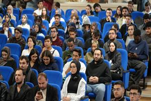 Hamit Çepni Konferans Salonu’nda gerçekleşen etkinliğe KBÜ Rektör Yardımcısı Prof. Dr. İsmail Rakıp Karaş, Mühendislik ve Doğa Bilimleri Fakültesi Dekanı Prof. Dr. Yavuz Sun, akademisyenler ve çok sayıda öğrenci katıldı.